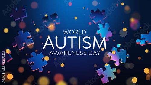© DEEPAK, Fototapeta premium World Autism Awareness Day with colorful puzzle pieces on blue background..