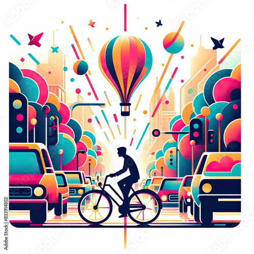 © Dwi, Obraz premium World Bicycle day with art illustration style