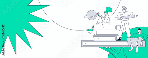 © Lyn Lee, Obraz premium World Book Day Reading Character Flat Vector Concept Operation Hand Drawn Illustration