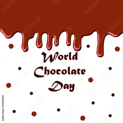 © Colomba Rossa, Obraz premium World Chocolate Day lettering poster. Melted dark chocolate on white background. Vector illustration.