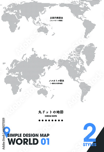 Naklejka premium デザインマップ「WORLD 01」2点 世界 地図 ドット / design map world