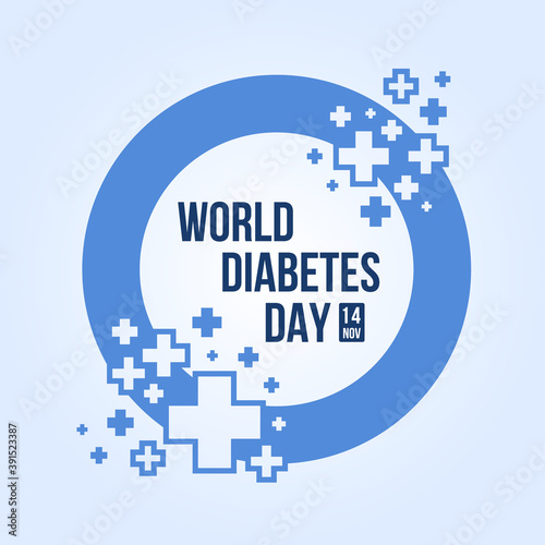Obraz premium World diabetes day banner - blue circle ring frame with abstract cross sign vector design
