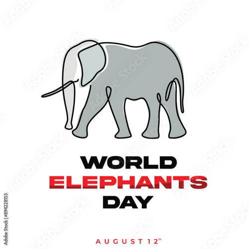 © Hesti, Obraz premium World Elephant Day continuous line design template background