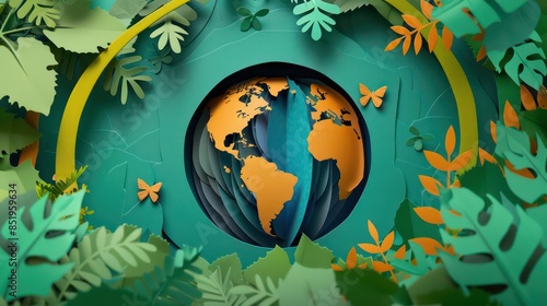 © Ibad, Naklejka premium World environment and earth day concept ,paper cut , paper collage style with digital craft