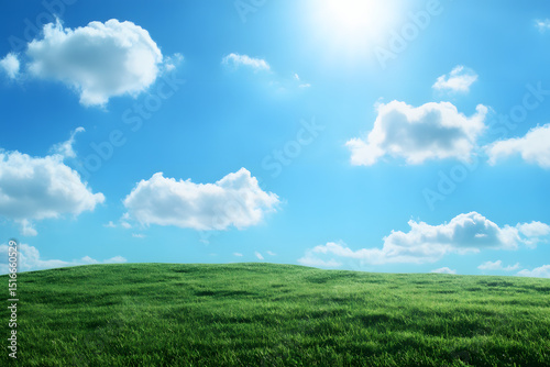 © Daniel, Naklejka premium World Environment Day concept: Green mountains and beautiful sky clouds under the blue sky