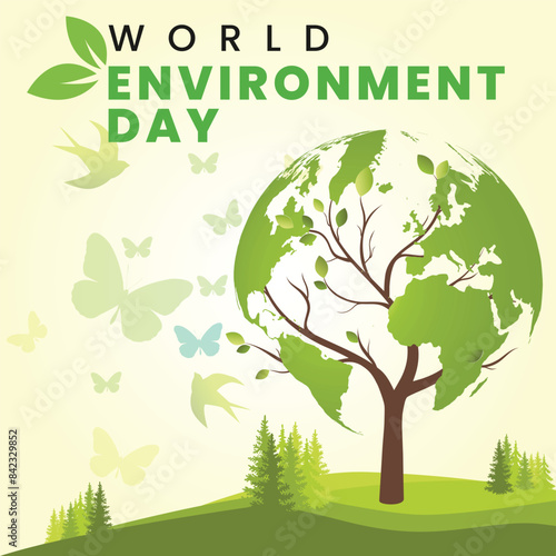 © BestBuyPoints, Obraz premium World environment day. Earth globe with greenery. Concept design for banner, poster, greeting card. Vector illustration