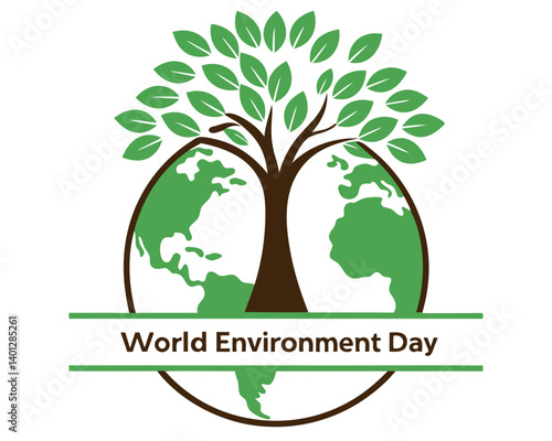Fototapeta premium World Environment Day: Tree Growing from Earth Globe Illustration