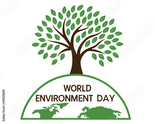 Fototapeta premium World Environment Day: Tree Growing from Earth Globe Illustration
