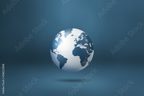 Fototapeta premium World globe, earth map, isolated on blue. Horizontal background