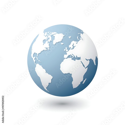 © Oktaf, Fototapeta premium World Globe Map with Blue Ocean, Continent, and Shadow Isolated