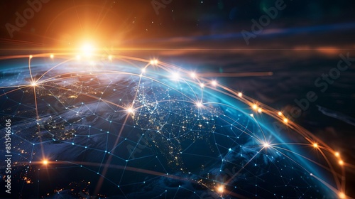 © nattapon98, Obraz premium World globe with glowing network lines,