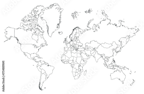 Fototapeta premium World grey map vector outline with country borders. Vector illustration of...