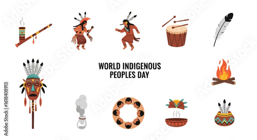 Naklejka premium World Indigenous Peoples Day Icon Set: Cultural Celebration