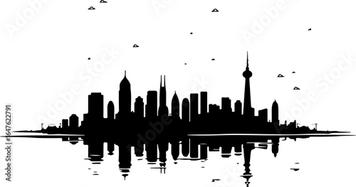 © Rokeyadesigner, Naklejka premium World Landmark City Skyline Silhouette – Global Urban Vector Art