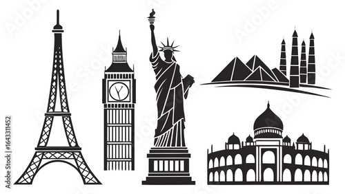 © Rehman, Obraz premium World Landmarks Silhouette, Eiffel Tower, Big Ben