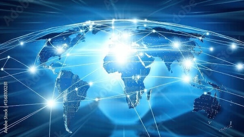 Naklejka premium World map and network connections in a global technology background.