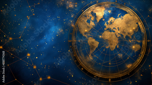 © Peece, Naklejka premium World map and star map, abstract background, on a blue background,