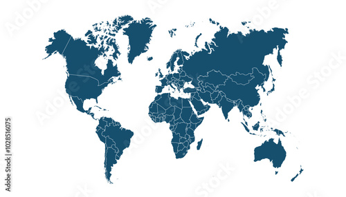 Obraz premium World map. Blue modern vector map. Silhouette map.