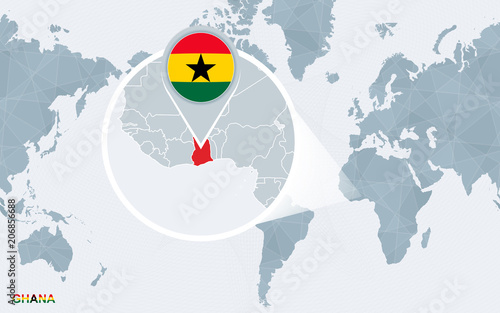 © boldg, Obraz premium World map centered on America with magnified Ghana.