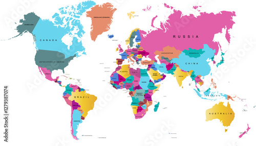© Pavel, Obraz premium World map. Color modern vector map. Silhouette map.