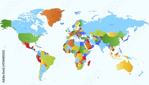 © Pavel, Obraz premium World map. Color modern vector map. Silhouette map.