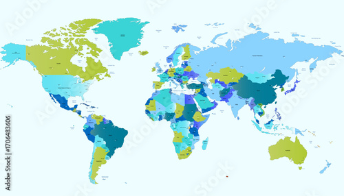 © Pavel, Obraz premium World map. Color modern vector map. Silhouette map.