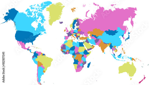 © Pavel, Fototapeta premium World map. Color modern vector map. Silhouette map