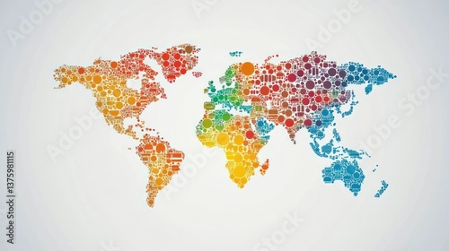 © ariss, Fototapeta premium World map, colorful, diverse symbols