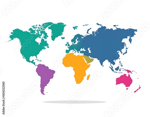 © Temu, Obraz premium World map divided into colored continents