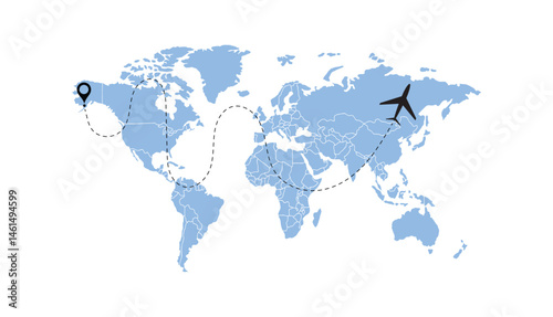 © Nexira, Fototapeta premium world map, flying white airplanes routes vector illustration