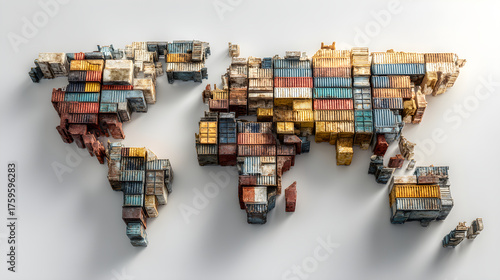 © utaem2022, Naklejka premium World map forming from shipping containers symbolizing global trade