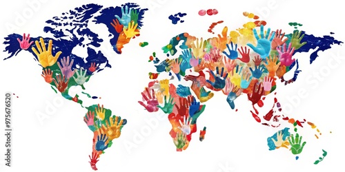 Fototapeta premium World Map Handprints, Unity, Diversity, Global Community