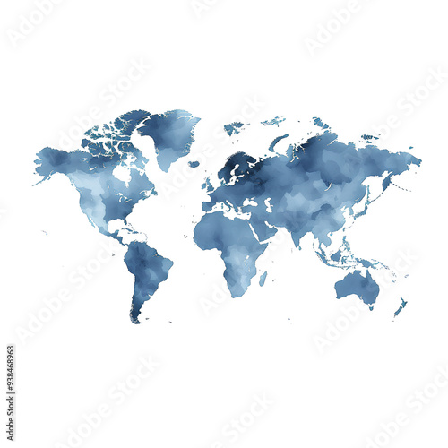 © One-Click-Stock™, Fototapeta premium World map in a blue watercolor style, white background