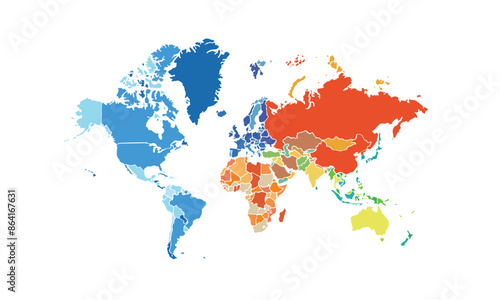 © K, Naklejka premium World map isolated modern colorful style. for website layouts, background, education, precise, customizable, Travel worldwide, map silhouette backdrop, earth geography, political, reports.