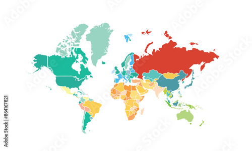 © K, Naklejka premium World map isolated modern colorful style. for website layouts, background, education, precise, customizable, Travel worldwide, map silhouette backdrop, earth geography, political, reports.