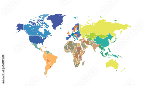 © K, Naklejka premium World map isolated modern colorful style. for website layouts, background, education, precise, customizable, Travel worldwide, map silhouette backdrop, earth geography, political, reports.