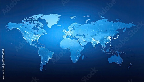 © Ran, Obraz premium World map, light-blue continents on dark-blue background