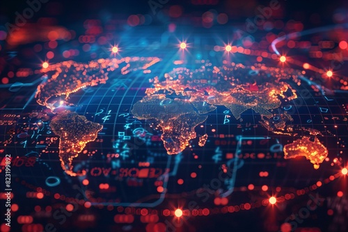 Fototapeta premium World map lights glow closeup countries geography travel