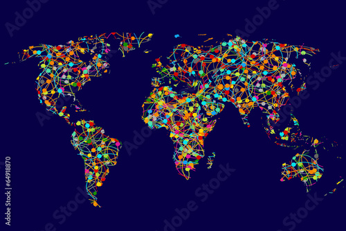 © hibrida, Naklejka premium World map made of abstract colorful dots network