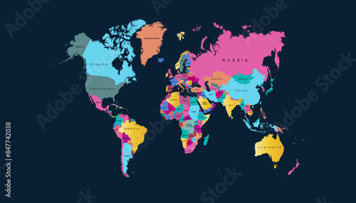 © Pavel, Obraz premium World map. Modern color vector map. Silhouette map