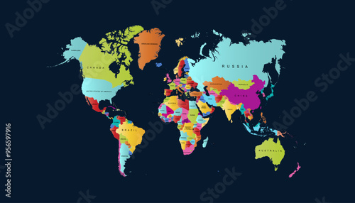 © Pavel, Obraz premium World map. Modern color vector map. Silhouette map