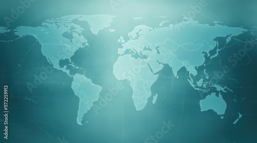 © admin_design, Obraz premium World map on blue background, explore continents, oceans and global geography