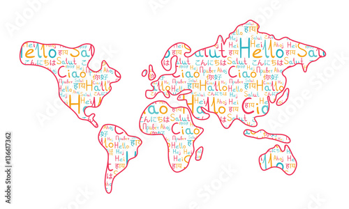 © miaynata, Obraz premium World map on the white background pink hello pattern