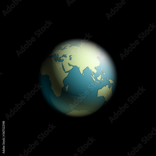 Fototapeta premium world map rising sun. Solar eclipse globe icon, space sunlight. Planet Earth...
