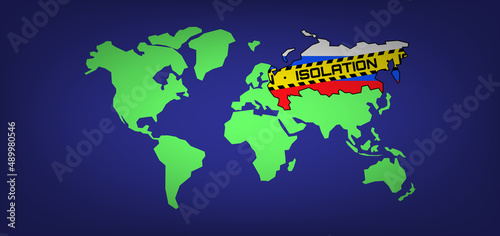 © tarikdiz, Obraz premium world map russian federation territory isolation yellow tape geopolitics sanctions vector illustration
