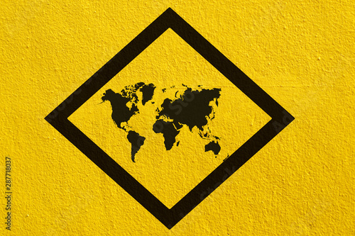 © paisan191, Fototapeta premium world map signs on yellow wall