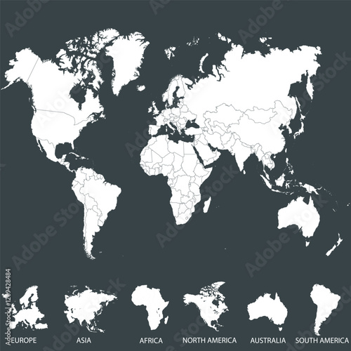 Naklejka premium World map. Silhouette map. Continents