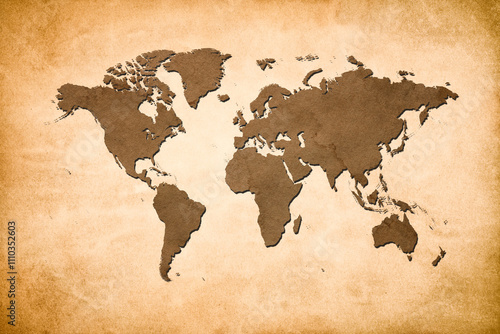 © Philip, Fototapeta premium World Map - Vintage Physical Topographic - Vector Detailed Illustration