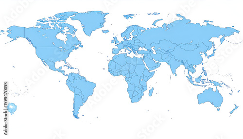 © Maksday, Fototapeta premium World map with global, countries, and blue.