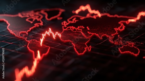 © Ishika, Fototapeta premium World Map with Glowing Red Stock Market Data